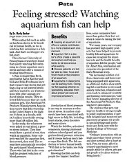 “An increasing number of offices, classrooms and homes are being equipped with aquariums, as additional studies show watching fish contributes to stress and anxiety reduction, relaxation and even leads to enhanced creativity and learning environments,” said Bob Vetere, managing director of the American Pet Products Manufacturers Association.